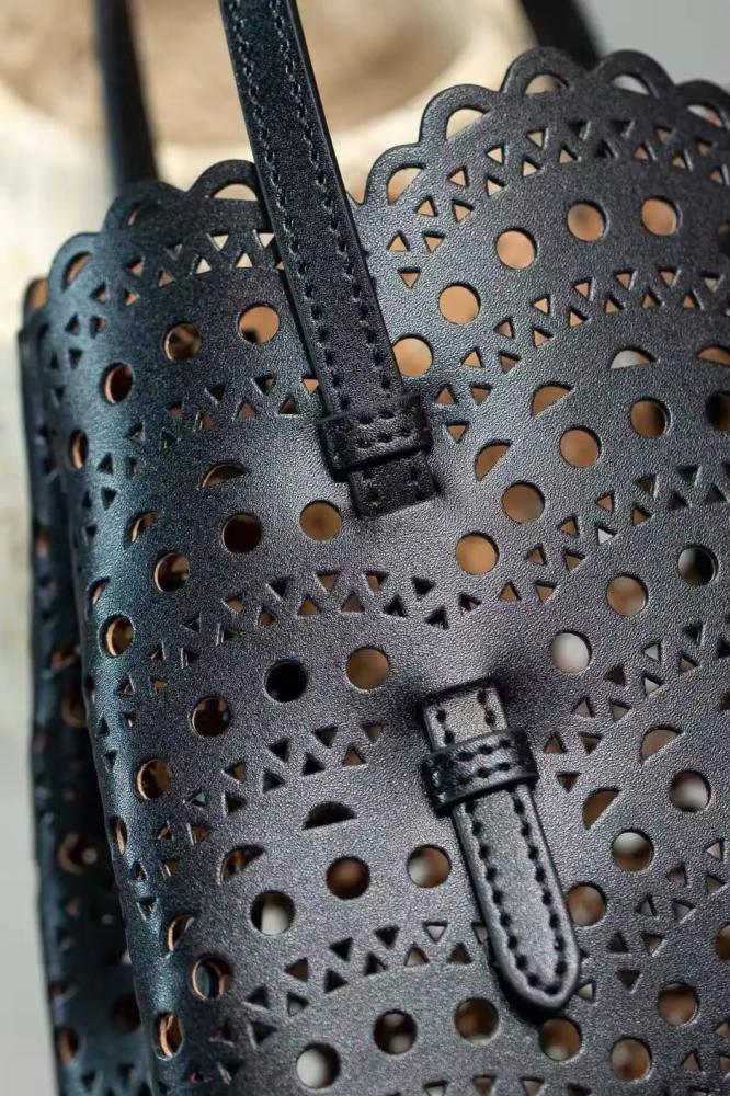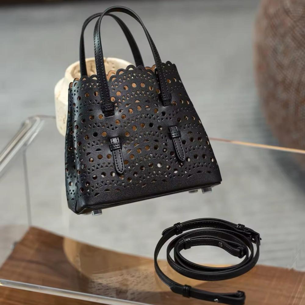 حقيبة ALAA الأنيقة تتميز بتصميمها المستوحى من العلامة الفاخرة ALAIA، مصنوعة بجودة عالية تضفي لمسة من الأناقة والرقي على مظهرك اليومي أو للمناسبات الخاصة.