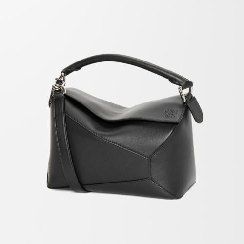 حقيبة Small Puzzle Edge من LOEWE تتميز بتصميمها الهندسي المبتكر وخطوطها المميزة التي تمنحها شكلاً مكعباً مع لمسة عصرية أنيقة.