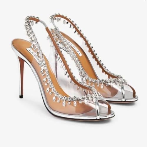 استمتعي بإطلالة فاخرة ومتألقة مع صندل أكوازورا تيمبتيشن بالكريستال، الذي يجمع بين الأناقة العصرية والتفاصيل الراقية. يتميز هذا الحذاء بكعبٍ عالٍ يمنحك لمسة من الأنوثة والجاذبية، مع تصميم شفاف مزين بالكريستالات المتألقة التي تضيف لمسة ساحرة لإطلالتك.
